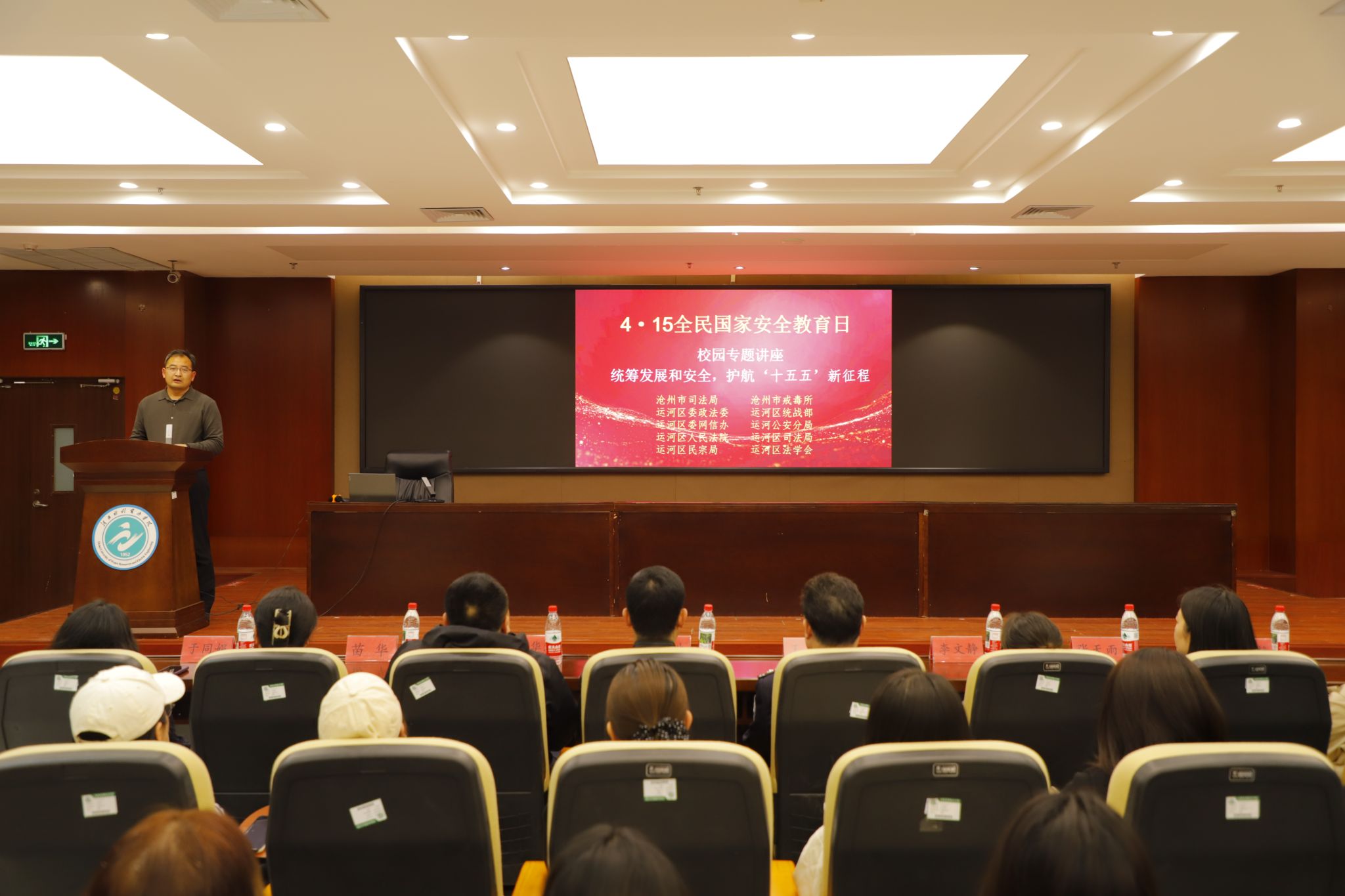为深入贯彻总体国家安全观,落实2026年全民国家安全教育日宣传教育工作要求,切实增强师生国家安全意识与禁毒防毒能力,4月13日下午,我校邀请沧州市司法局、戒毒所,运河区委政法委、统战部、网信办、公安分局、人民法院、司法局、民宗局、法学会等10家单位来校举办“4・15”全民国家安全教育日校园专题讲座及现场宣讲活动。