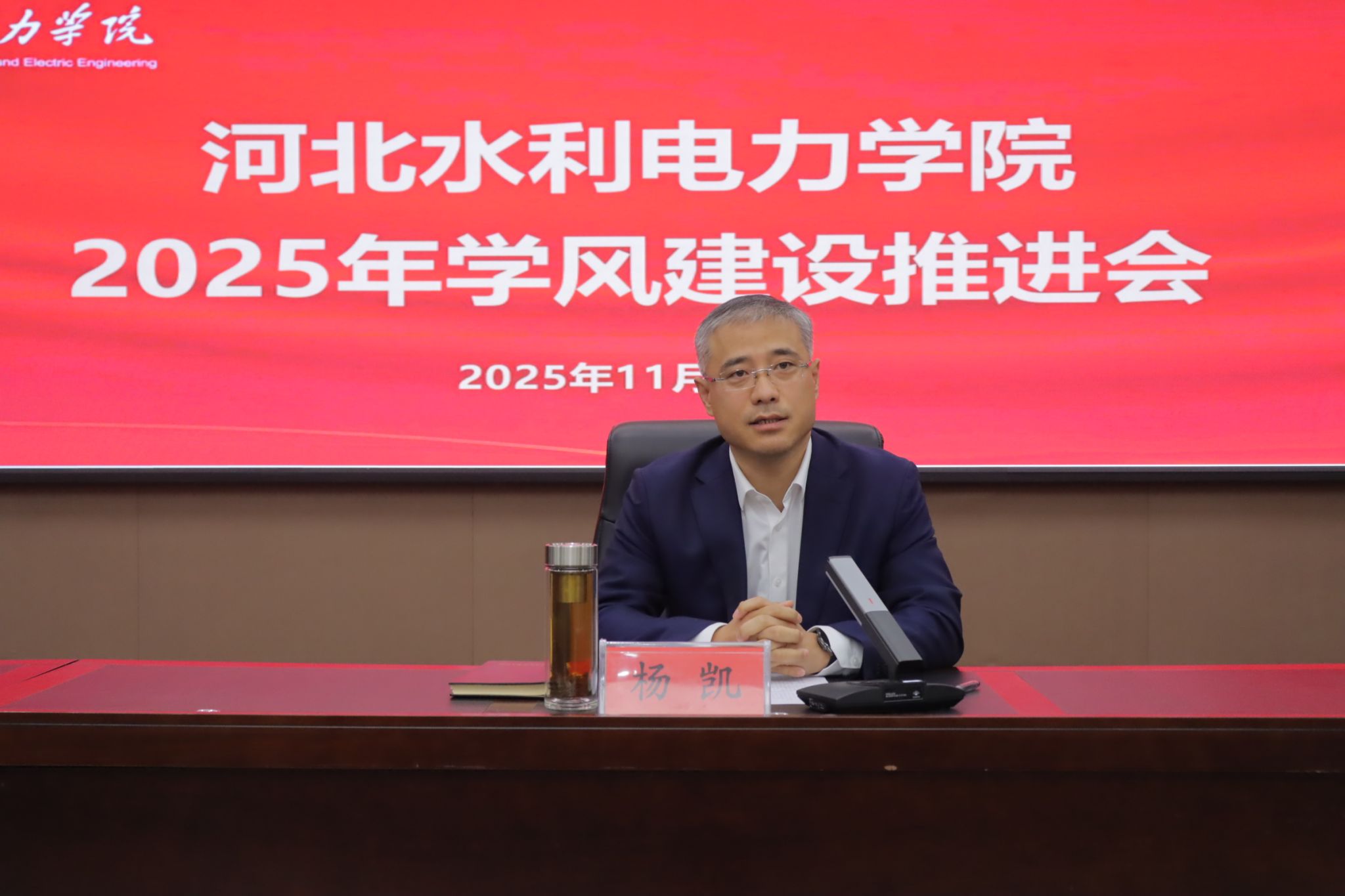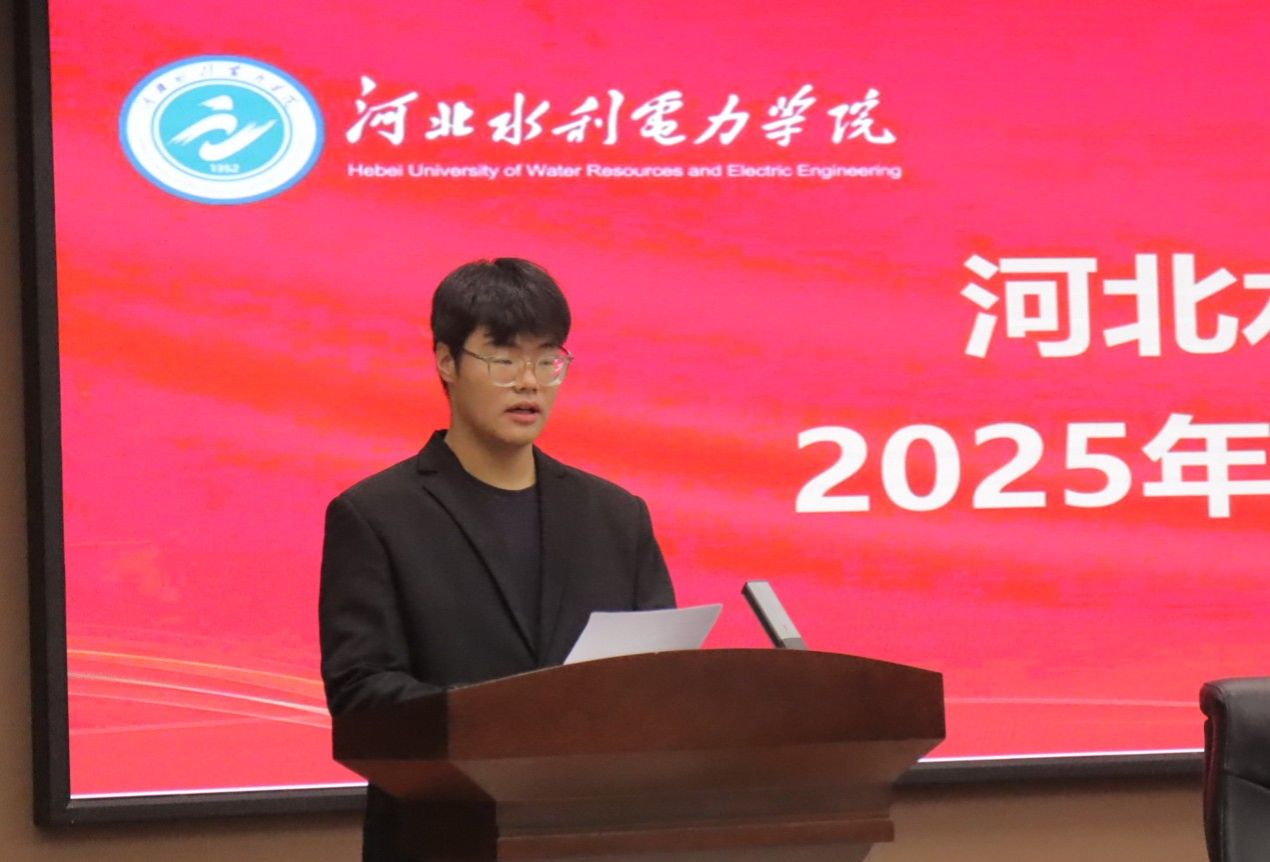 郑宝民宣读了《河北水利电力学院2025年学风建设质量提升工作方案》。水利工程系辅导员卢伯阳、电力工程系电气2502班学生李光磊分别作为辅导员和学生代表作表态发言。