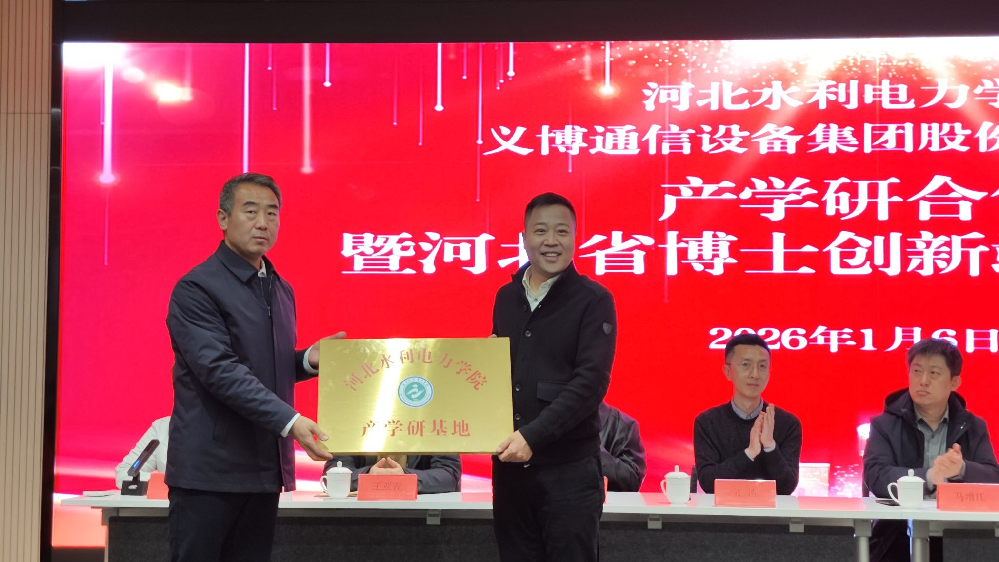 1月6日,我校与义博通信设备集团股份有限公司举行产学研合作暨河北省博士创新站揭牌仪式,标志着学校在深化产教融合、推动科技创新与产业发展深度融合方面迈出新步伐,也为自动化等优势学科专业的成果转化与人才培养搭建了重要平台。