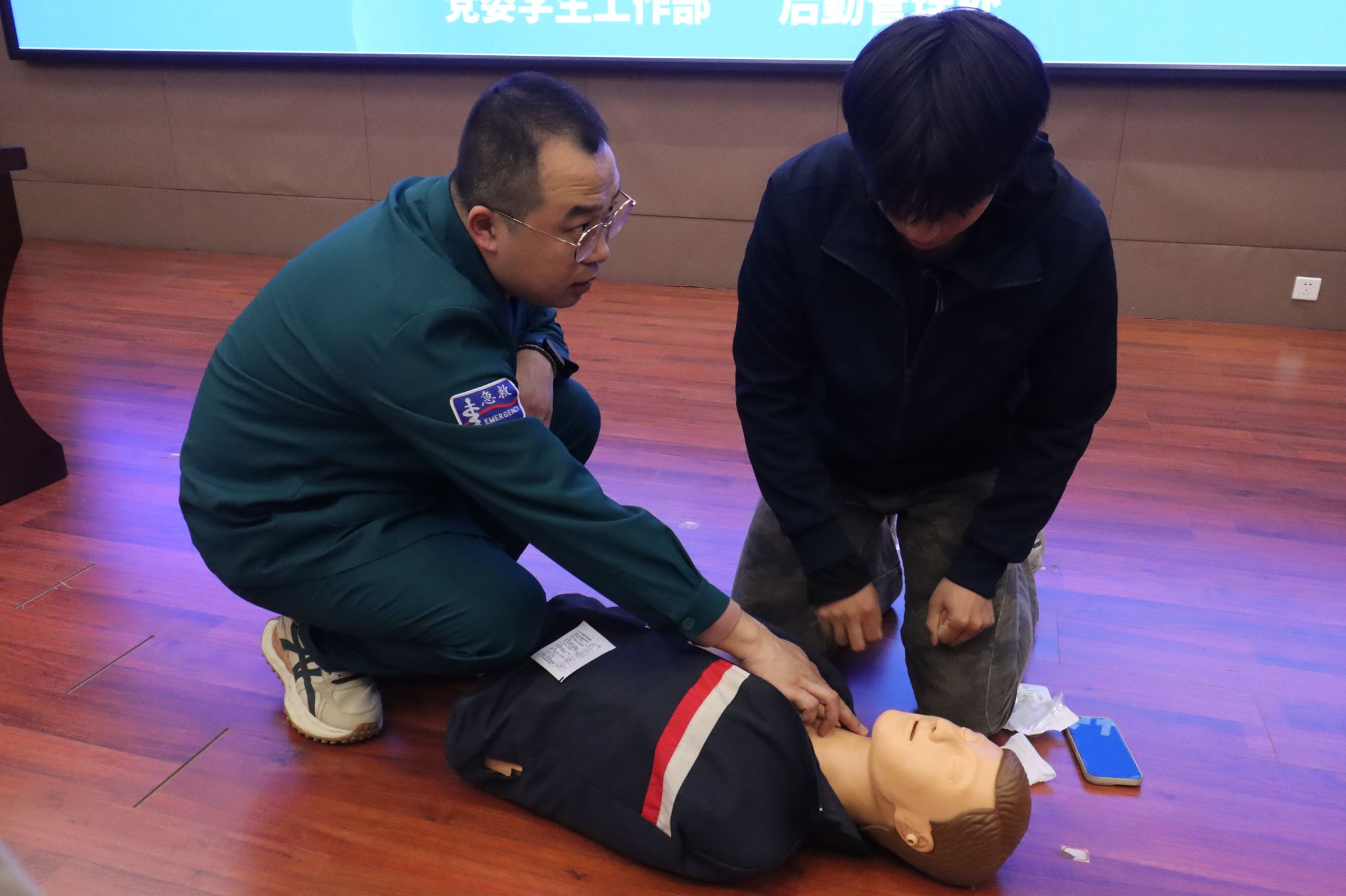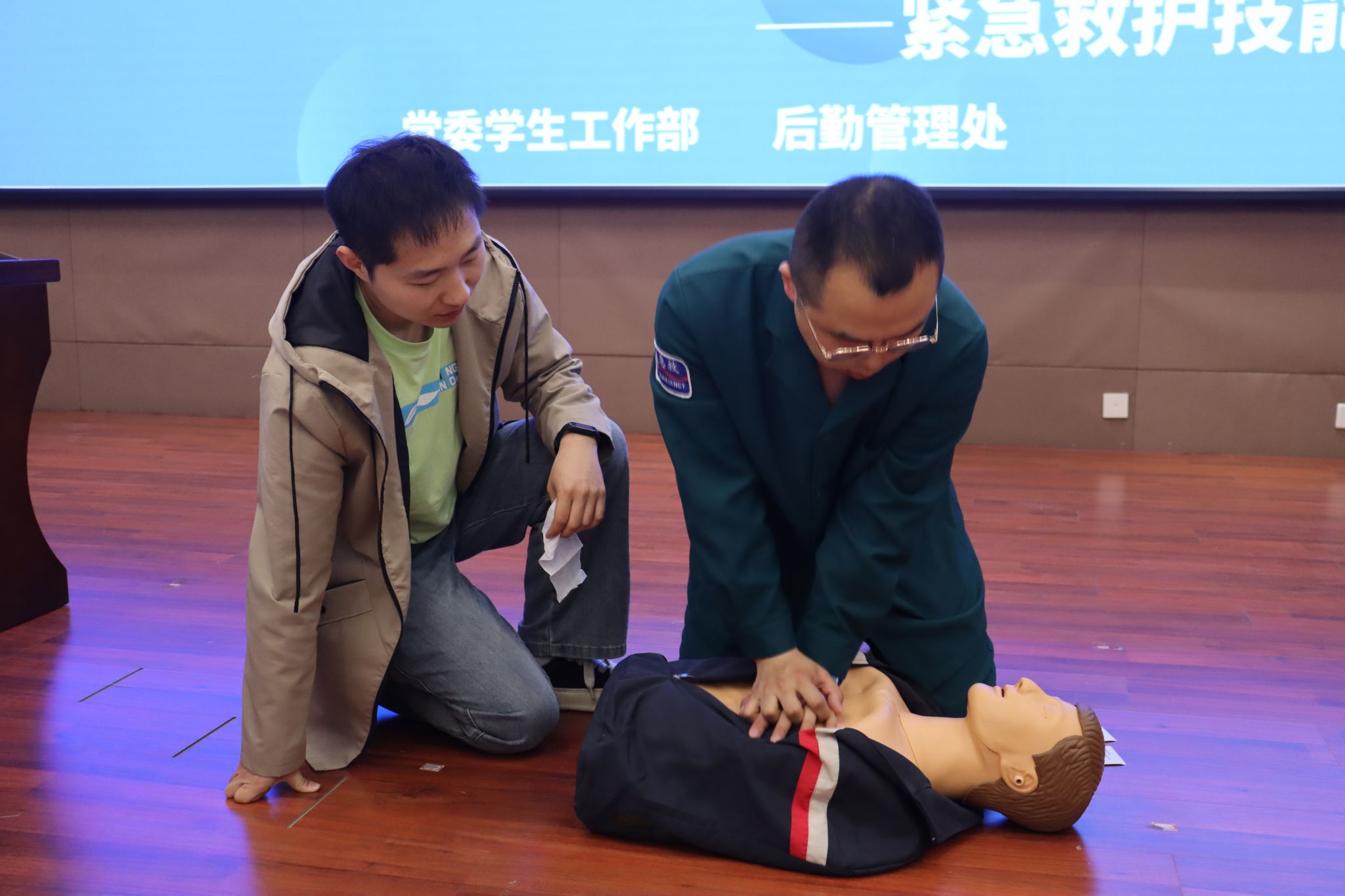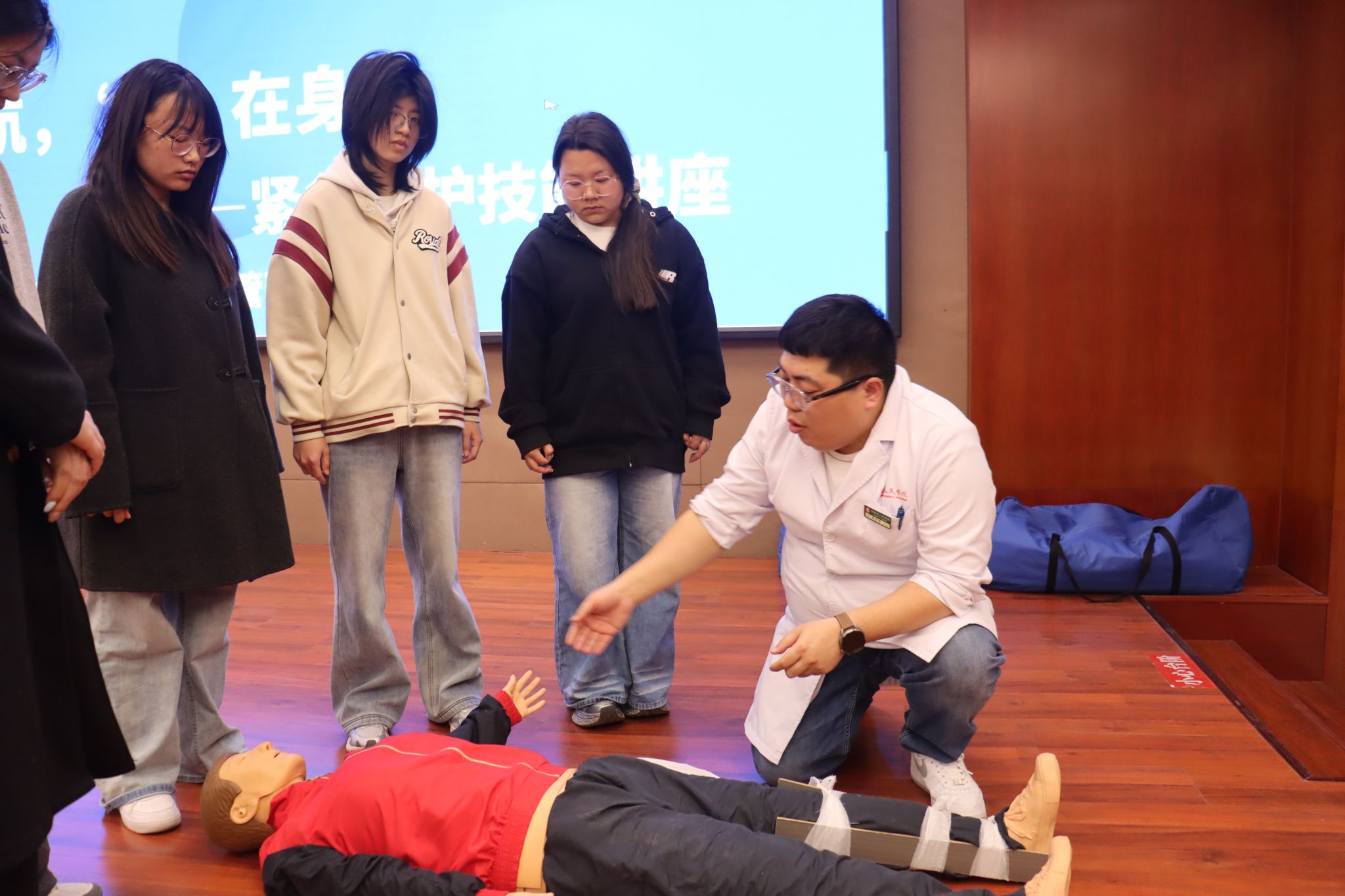 为全面提升我校学生的应急救护能力,筑牢校园安全防线,3月31日下午,由党委学生工作部与后勤管理处联合主办的“应急护航,‘救’在身边——紧急救护技能培训讲座”在弘文守正楼九楼报告厅举办。本次讲座特邀沧州市人民医院神经外科一区副主任医师王玉华、胸外科副主任医师张银文、关节运医骨科三区主治医师赵吉堂、急诊科主管护师王勇及孙文旭组成专家团队,进行现场授课与指导。后勤管理处校医务室医生共同参与,全校200余名学生参加活动。