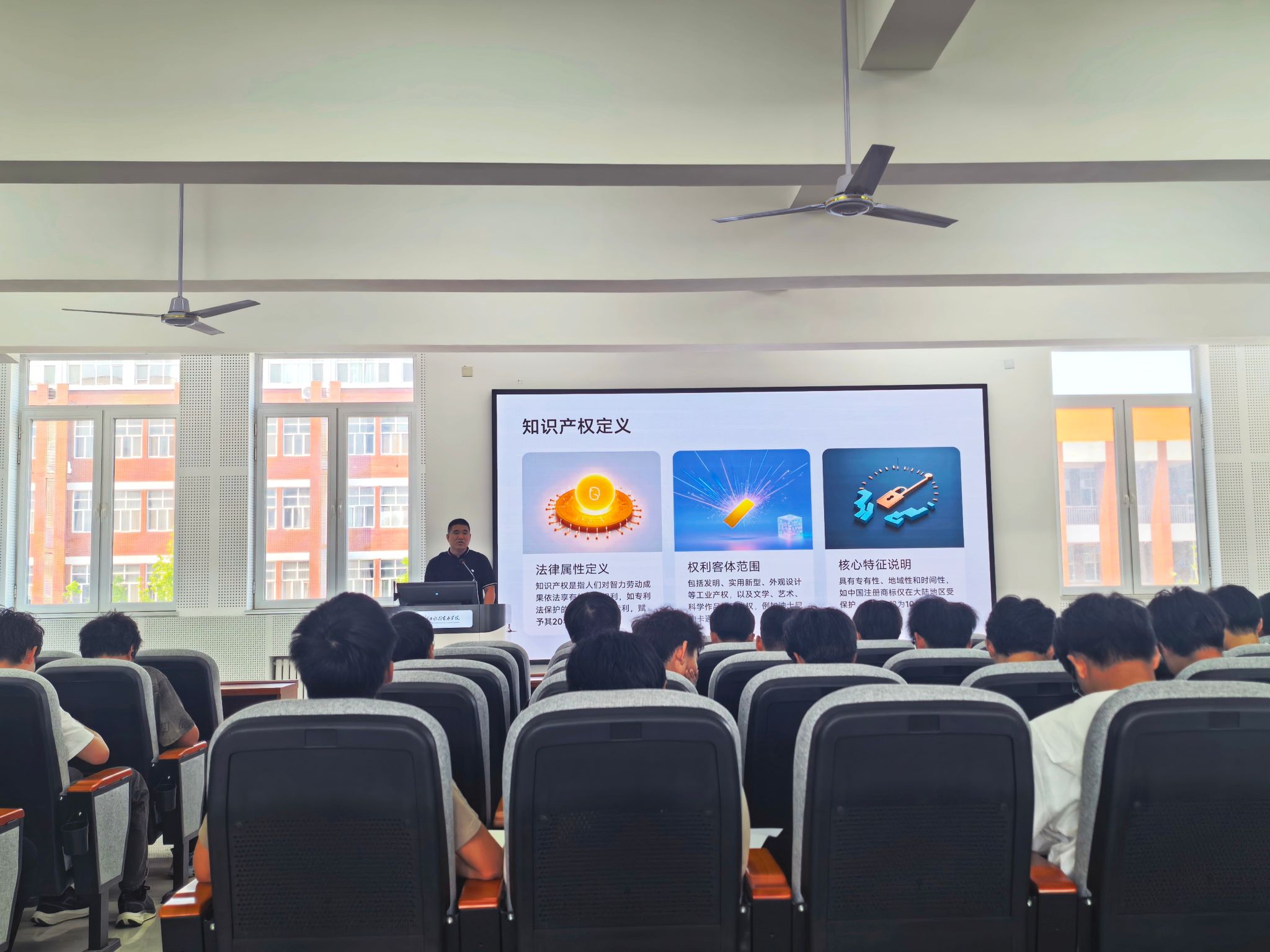 为积极响应2026年全国知识产权宣传周“加强新兴领域知识产权保护 加快新质生产力发展”主题,4月23日,我校特邀沧州市知识产权协会副会长、沧州誉上专利代理事务所祁迎龙来校作“知识产权与成果转化”专题讲座,吸引全校220余名学生到场参与。
